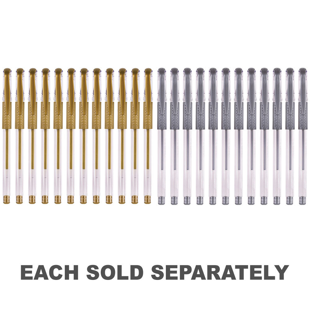 The Basics Gel Pens Gold 12's, a set of fine rollerball gel pens in an opaque gold colour. These pens are perfect for decorative and typography work, adding a touch of elegance and shimmer to your projects.