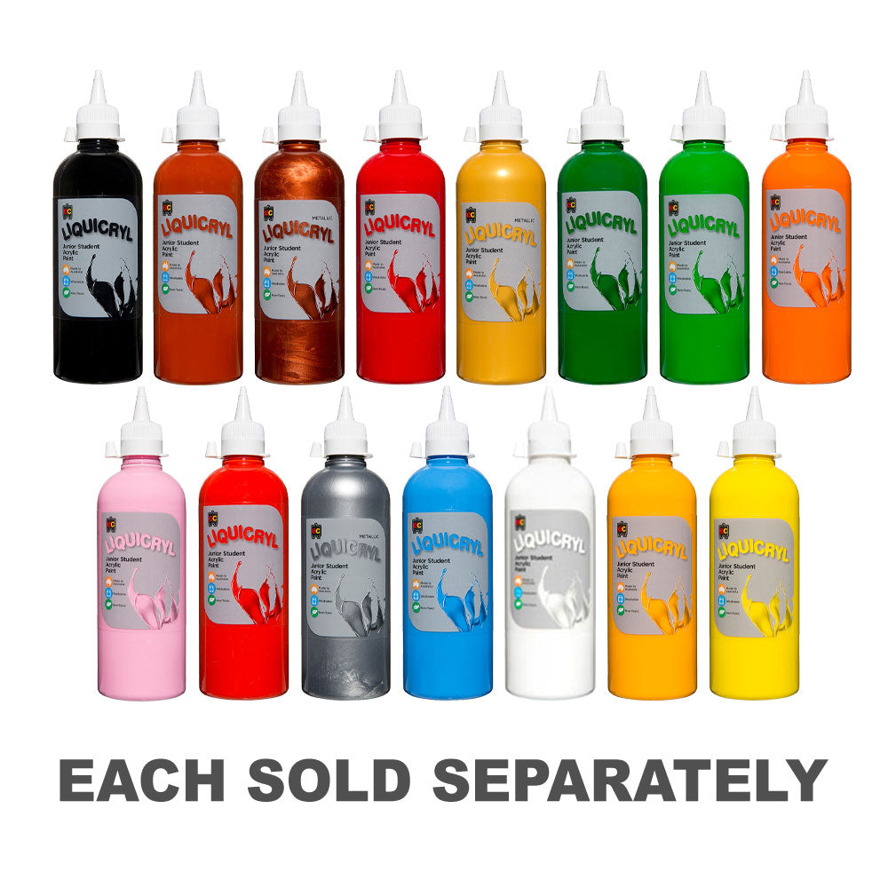 The Liquicryl Junior Student Acrylic Paint, made specifically for junior artists, is a non-toxic, washable, and fast-drying paint. Its brilliant and thick colours ensure eye-catching artwork with every use. Made with safe and high-quality ingredients, it is an ideal choice for younger children.